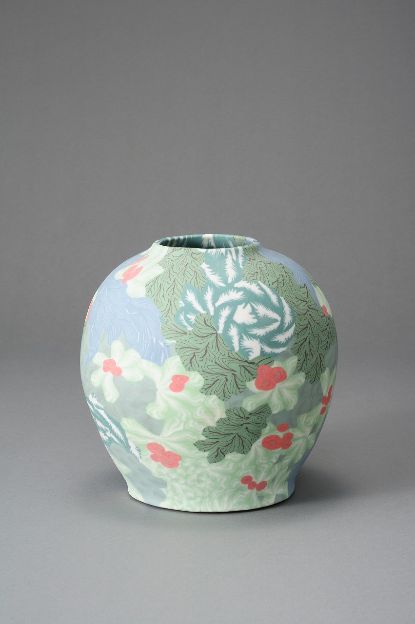 磁器練り込み壷「緑風」