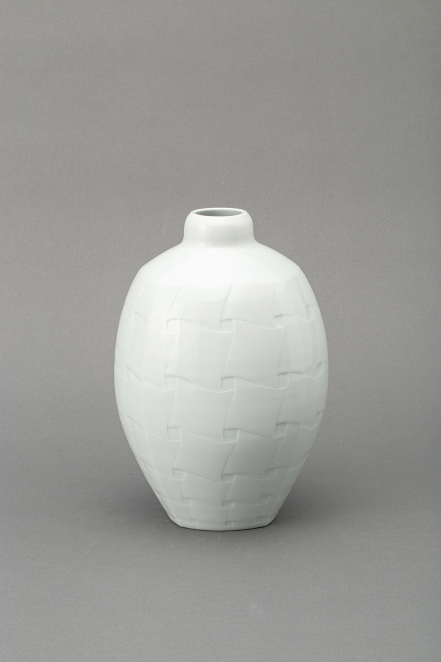 青白磁遊び網代文花器