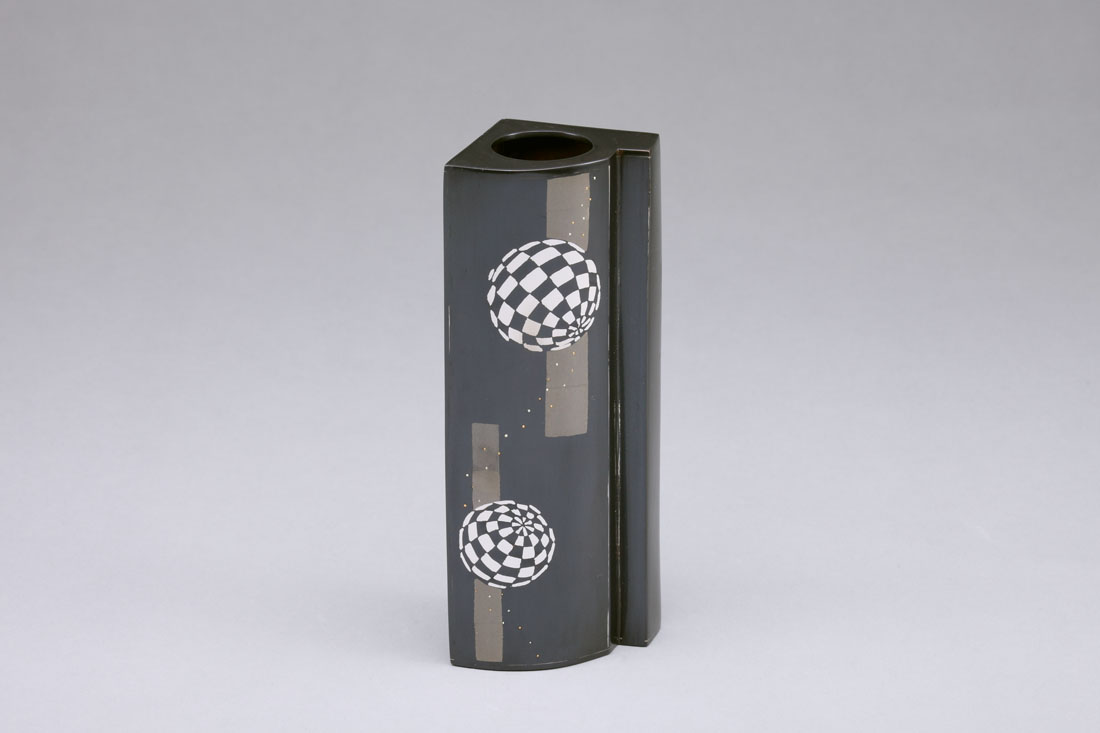 黒味銅象嵌花器「游」