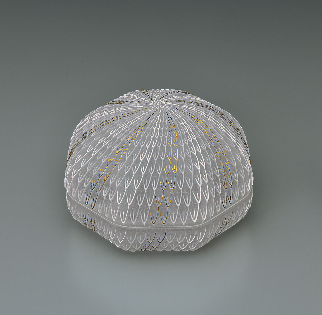 鋳込み硝子八角蓋物金彩「華の詩」