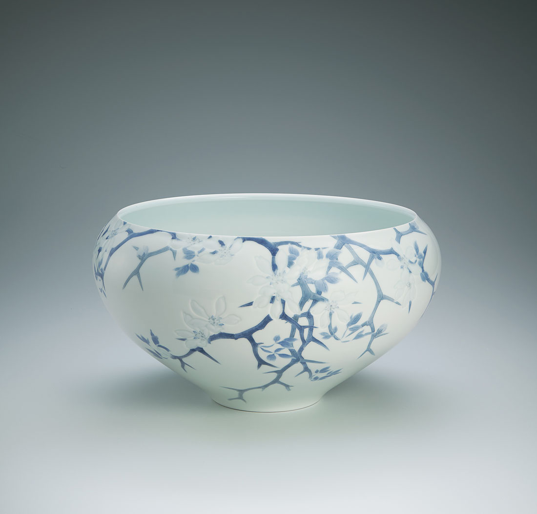 染付彫鉢「枳殻」