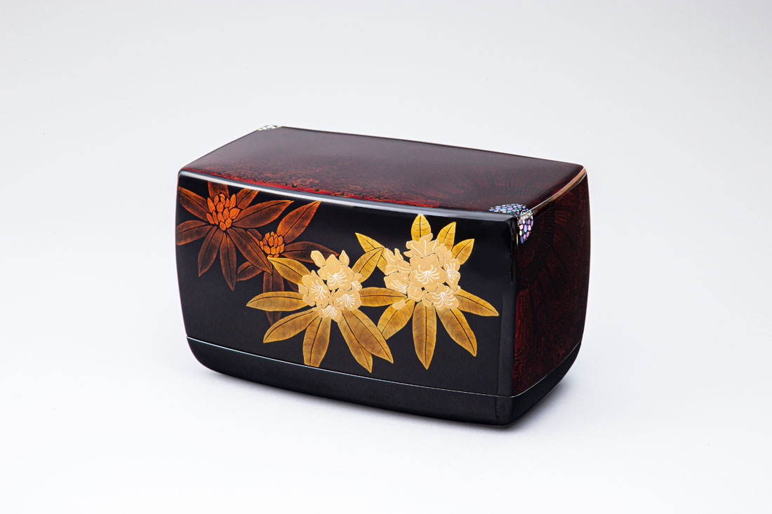 変塗蒔絵箱「高山の植物 ハイマツ・シャクナゲ」