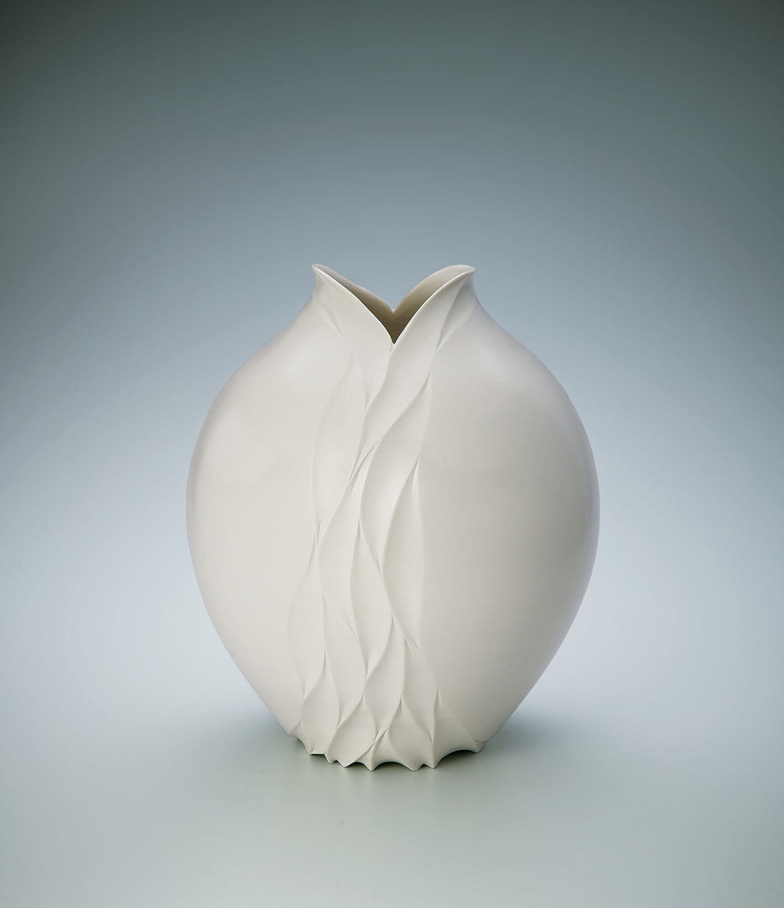白牙釉彫文壺
